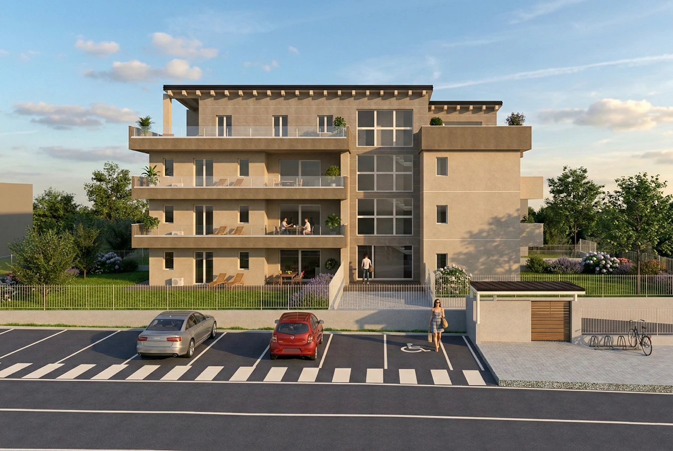 Il progetto prevede comodi parcheggi riservati per ogni unità immobiliare, disponibili sia all’interno che all’esterno del residence, a garanzia di praticità e funzionalità.
